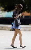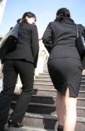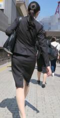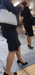 スカートから伸びるストッキングがたまりませんね(*^^*)