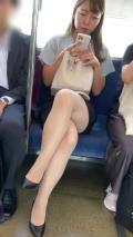 ムッチリOL電車対面のパンスト純白パンチラ