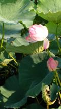 病院の帰りに、近くの釣り堀を見たら睡蓮が今にも開きそうでした。