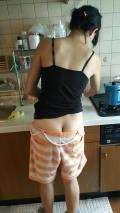 こんな格好で台所に立ってたら朝からムラムラしちゃいますよ(*^_^*)