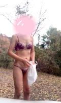 下着姿で野外露出