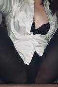 疲れたので黒タイツ越しのパンツと胸元撮りました!笑